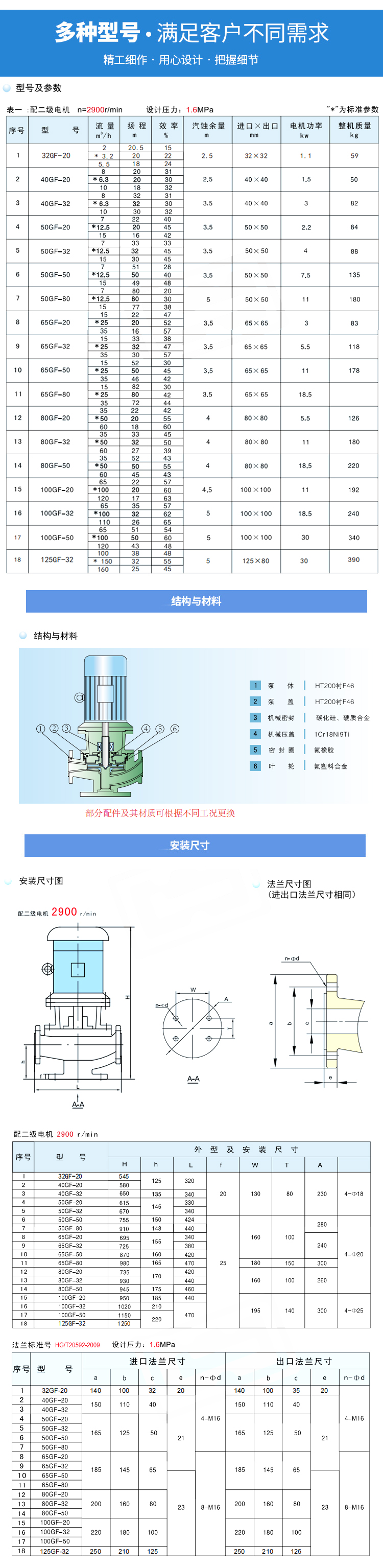 1、GF系列襯氟管道泵為立式結構,進出口口徑相同,且位于同一中心線上;