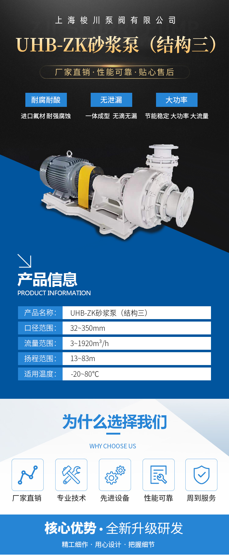 UHB-zK型系列砂漿泵為懸臂式單級(jí)、單吸離心泵,其過流部件采用鋼襯超高分子量聚乙烯制造,具有較強(qiáng)的耐腐蝕性、卓越的耐磨性、抗蠕變性(耐環(huán)境應(yīng)力開裂),同時(shí)采用金屬基體結(jié)構(gòu),提高了產(chǎn)品的承壓能力。