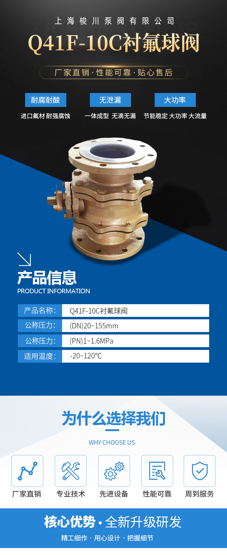 Q41F-10C系列氟塑料球閥,采用碳鋼精鑄,內襯氟塑料,球閥及過流部件包氟塑料,具有外型美觀、強度高、經久耐用的特點。